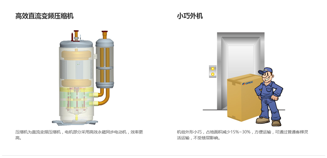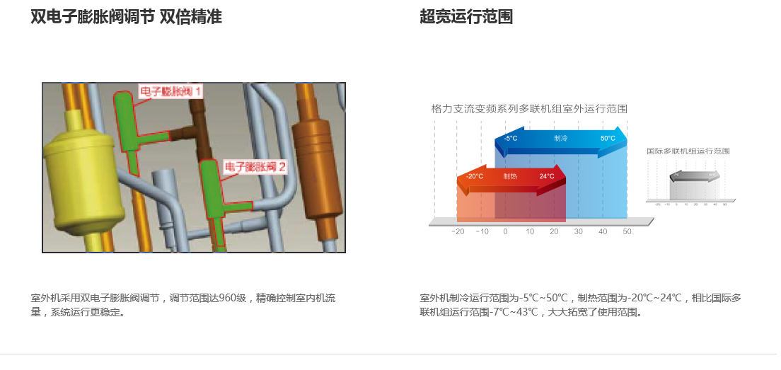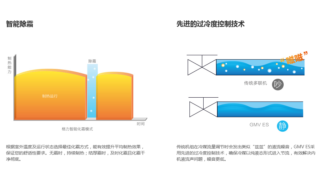 輕商專用、大冷量多聯(lián)機、直流變頻、過冷度控制技術、制熱不換向回油