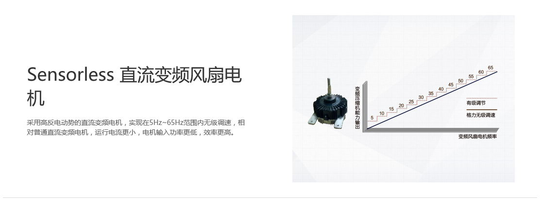 直流變頻技術(shù)、直流變頻壓縮機(jī)、永磁同步電動機(jī)、智能除霜、180°正弦波直流變速技術(shù)